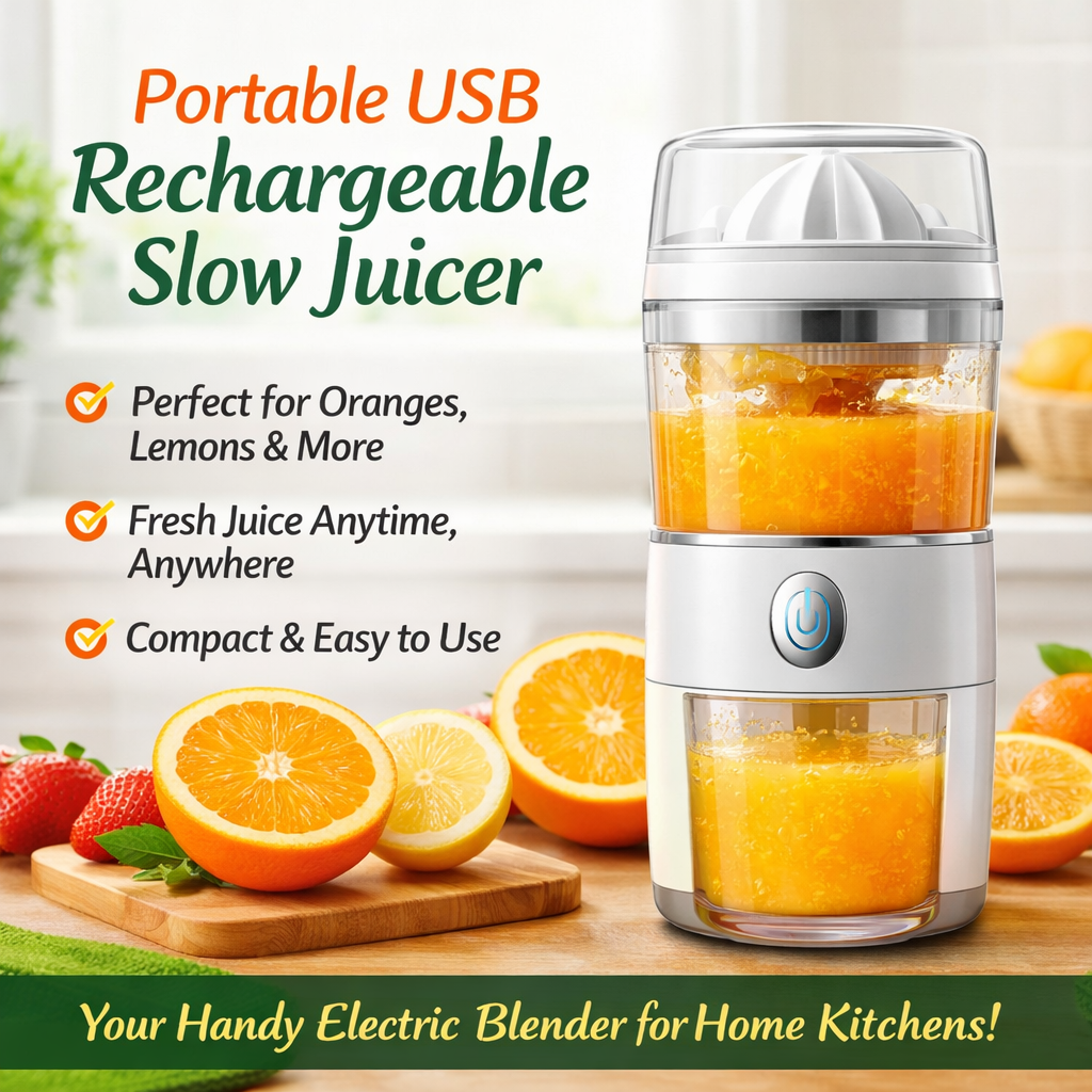 Fresh juice made easy! Perfect for oranges, lemons, and more, this compact electric blender is designed for convenience at home or on the go.