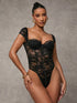 Sexy Short-sleeved Black Square-neck Bodysuit Sheer